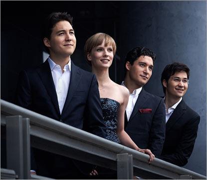Among the ensemble’s formative experiences were their studies with the Alban Berg Quartet in Cologne and with Günther Pichler at the Escuela Superior de Reina Sofia in Madrid. Chamber music instruction by the Cherubini Quartet’s Harald Schoneweg was an important source of inspiration during the quartet’s early days, as was the artistic collaboration with Eberhard Feltz. Among the ensemble’s chamber music partners are renowned artists such as Menahem Pressler, Henri Sigfridsson, Sabine Meyer, Nils Mönkemeyer, Diemut Poppen, Nicolas Altstaedt and David Orlowsky.